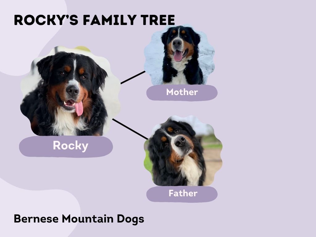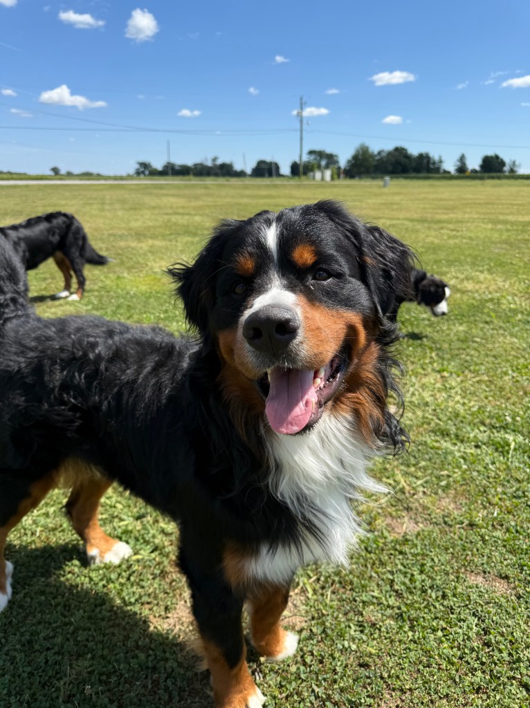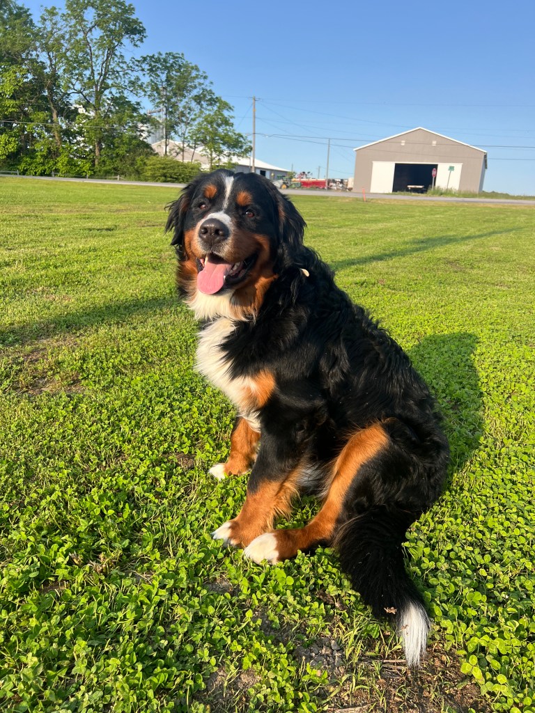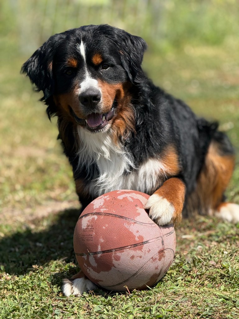 Rocky is the heartthrob of the pack! Heβs strong, loyal, and extremely affectionate. His classic Bernese build and warm temperament make him the perfect stud. He is over 100lbs. He loves to play fetch with a deflated basketball and cuddle with his humans. Rocky is available for stud services. Rocky comes from lines with clear genetic testing & passing OFAs. Rocky’s paternal grandmother is 11 years old & still alive!- AMAZING!