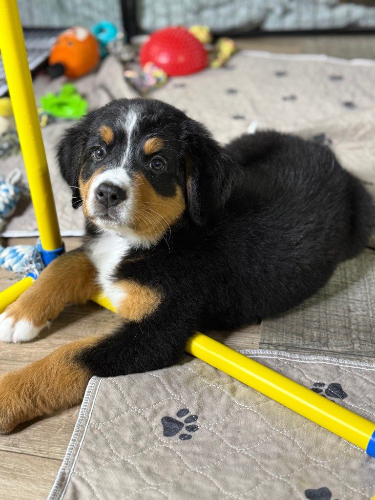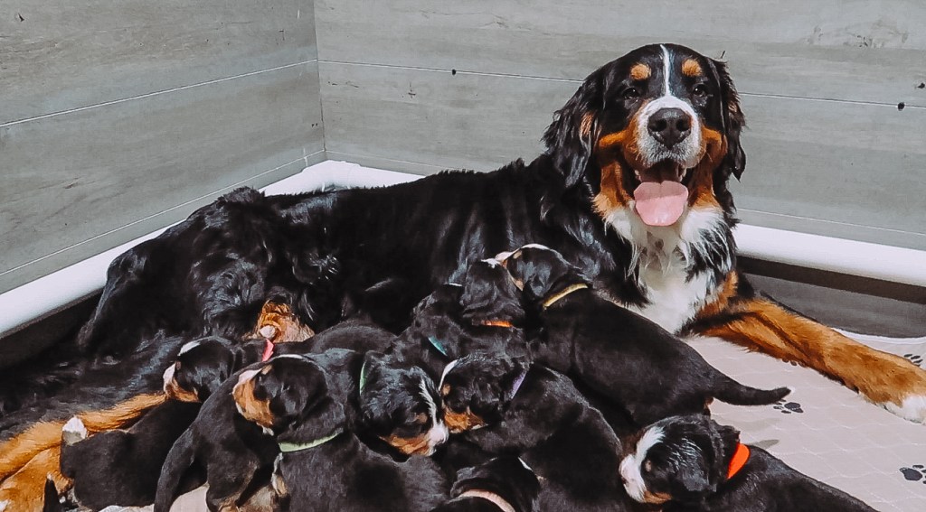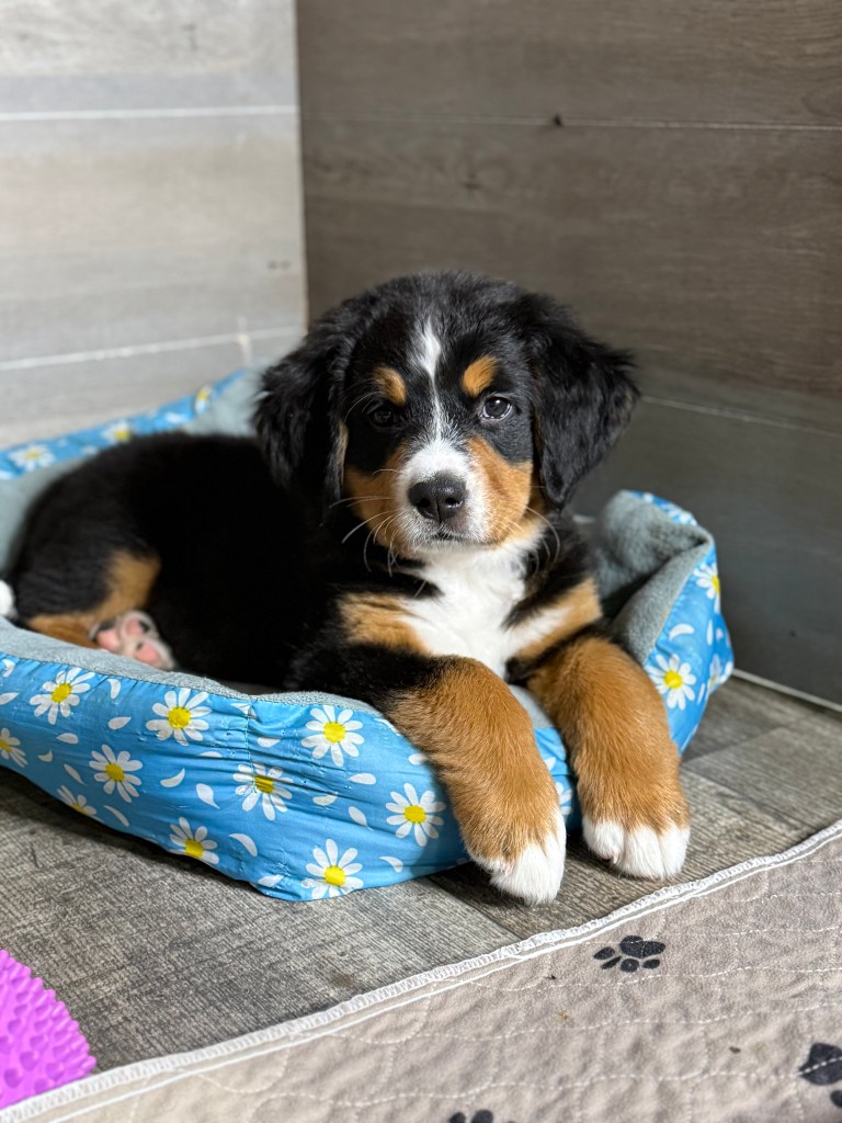 At Blissful Berners, all of our dogs are part of our family. Raised on our homestead, inside our home, they enjoy space to roam, love from our kids, and daily enrichment. Our breeding program is focused on health, temperament, and preserving the beauty of this amazing breed. All dogs are in the Bernergarde website as well.